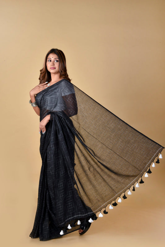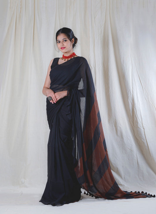 Black and Brown - Handwoven Cotton Saree