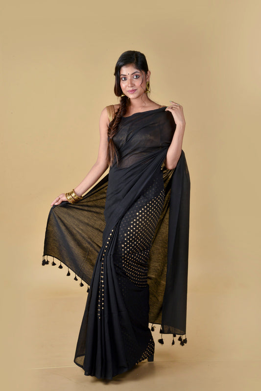 BLACK & GOLD - HAND BLOCK PRINTED COTTON SAREE