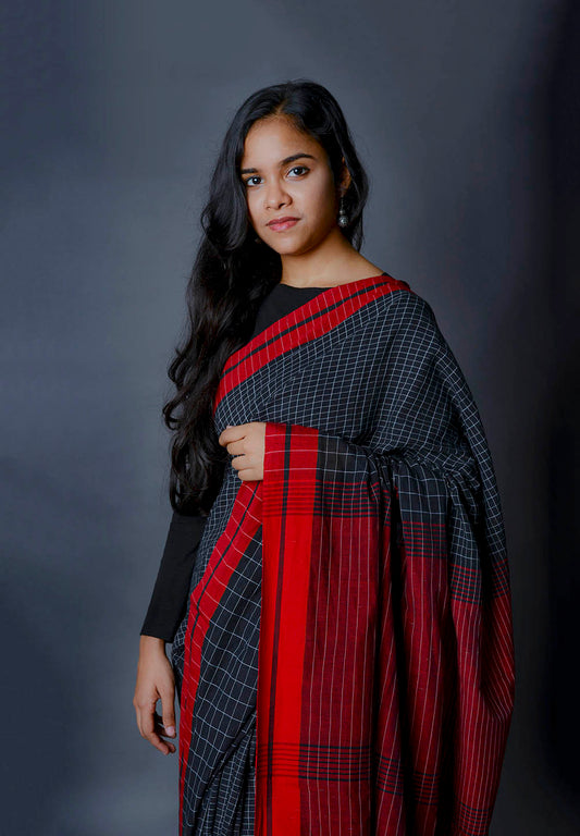 Sold outBlack & Red Cotton Saree