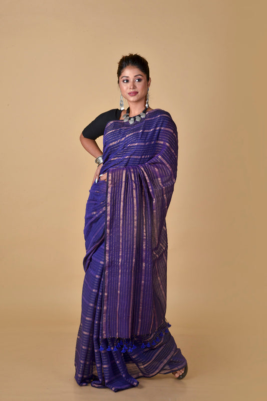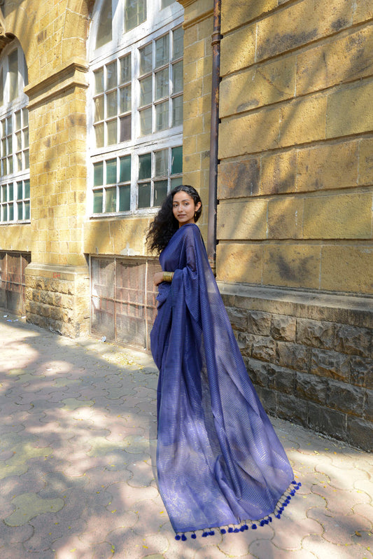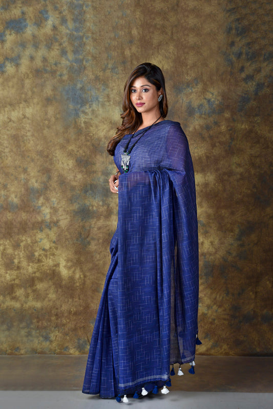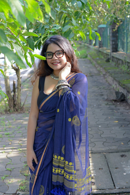 MIDNIGHT BLUE - HAND BLOCK PRINTED COTTON SAREE