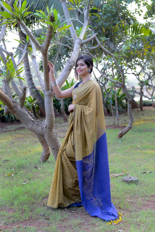Navy Blue and Mustard Yellow - Handwoven Cotton Saree