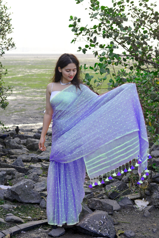 VIOLET LOVE (ALL OVER DOTS) HAND BLOCK PRINTED COTTON SAREE