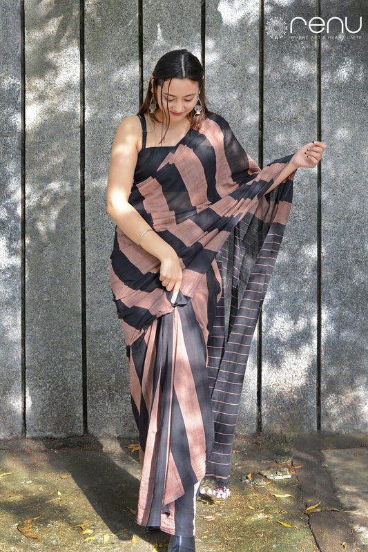 BROWN AND BLACK - HANDWOVEN COTTON SAREE