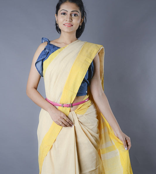 Blue and Mustard Yellow - Handwoven Cotton Saree