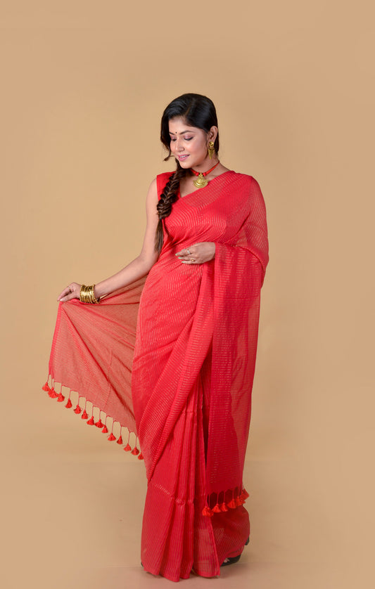 Red Zari Lines Saree