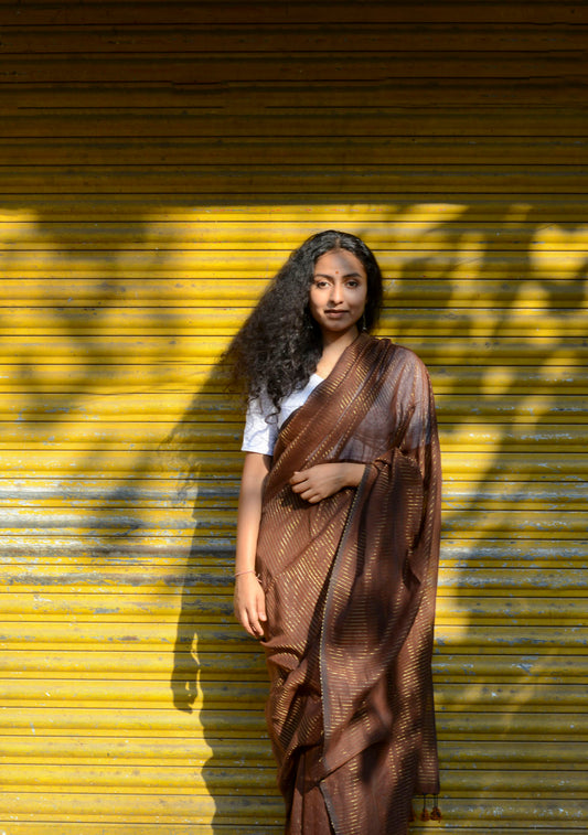 Sold outROSY BROWN ZARI LINES SAREE