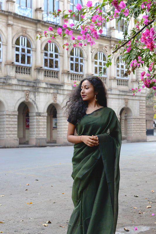 Bottle Green Zari Lines Saree