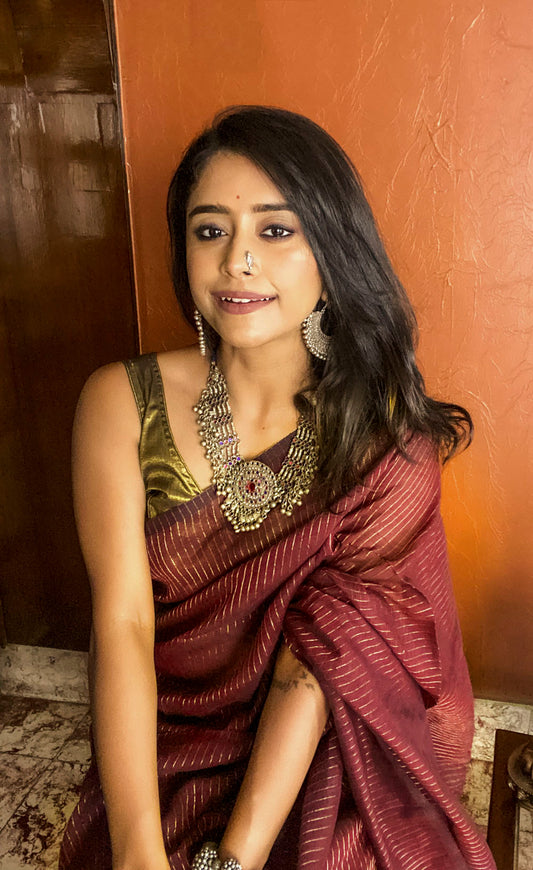 Maroon Zari Line Saree
